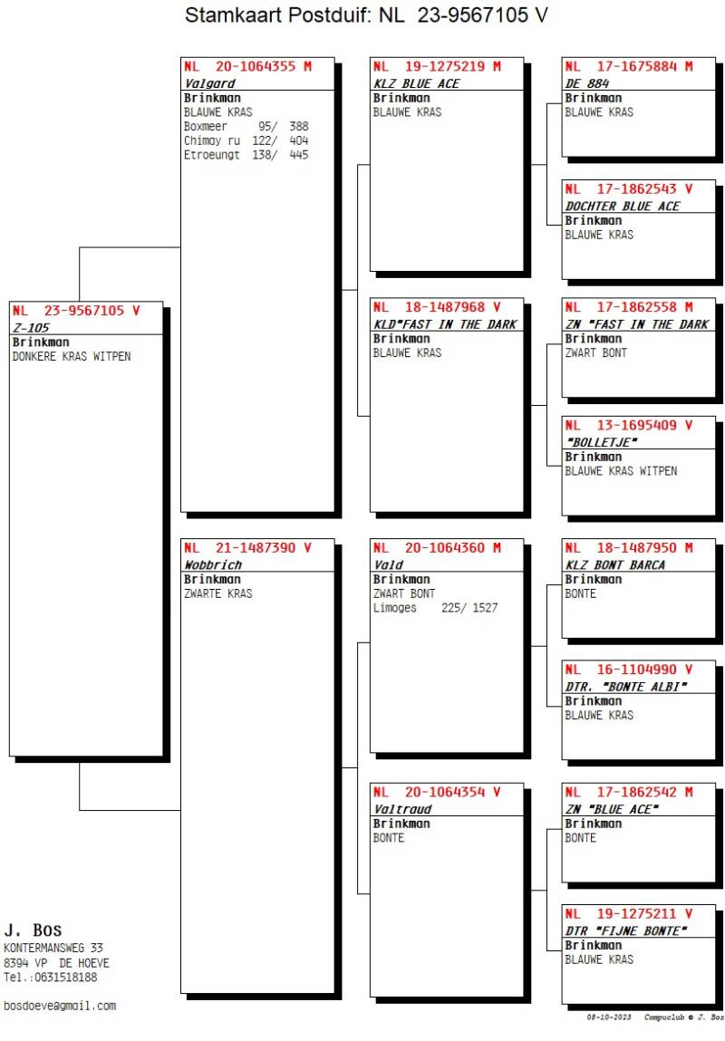 Eventueel voor de liefhebber van Brinkmanduiven is er een koppel zuivere Brinkmannen uit 2023 beschikbaar.